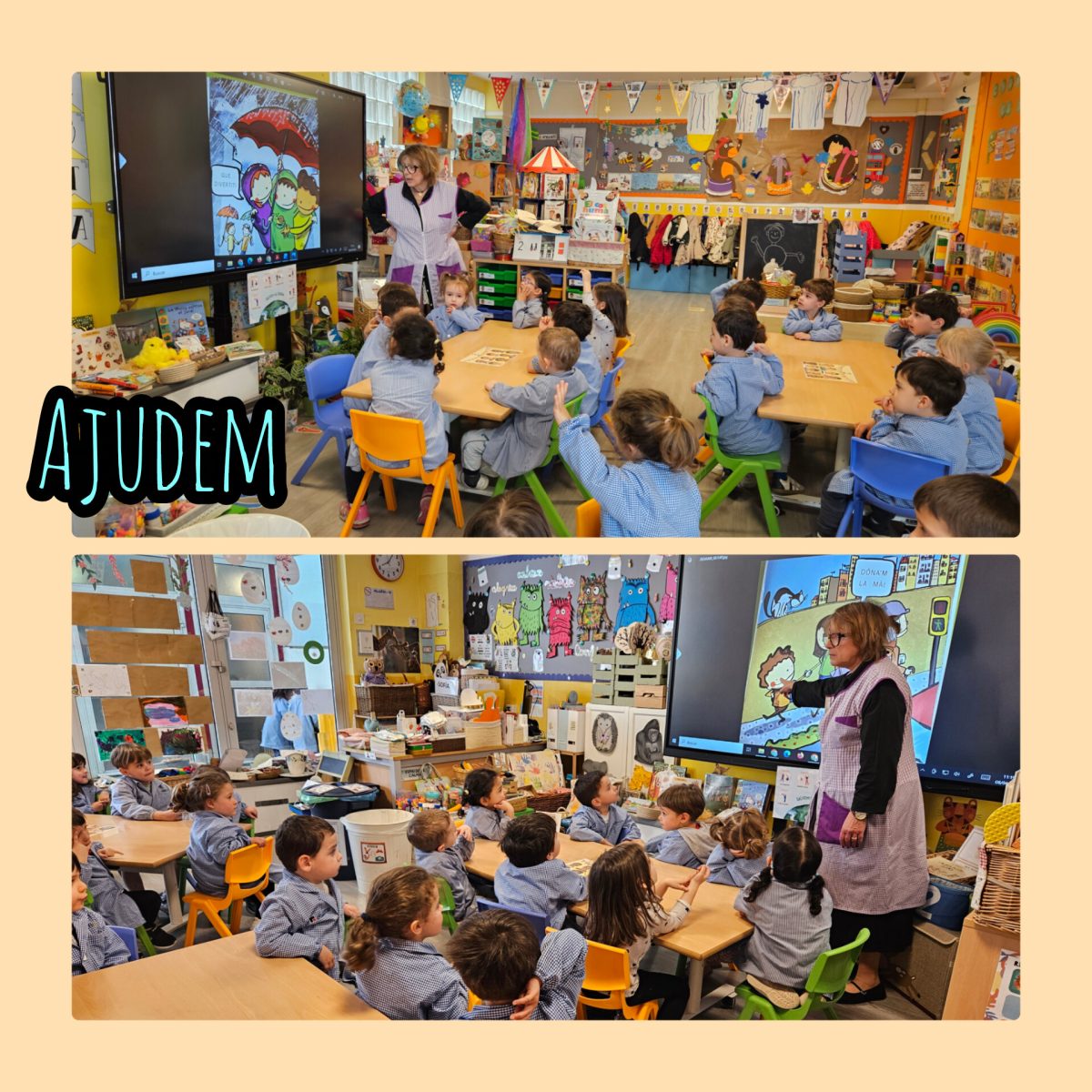 Aquesta setmana les mestres ens han explicat el conte “Som solidaris”. A partir d’escenes tendres i quotidianes, com compartir un entrepà o felicitar i donar suport a algú, transmet amb delicadesa valors com la solidaritat, el respecte, la cooperació… Entendre’ns, estimar-nos i respectar-nos els uns als altres ens permet, de mica en mica, construir un món millor.