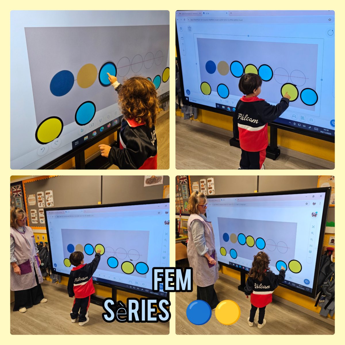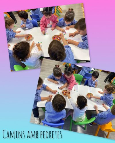 A part, hem continuat treballant les seriacions de dos elements alternant colors o formes. Hem provat amb objectes del nostre entorn i ara toca fer-los sobre el paper! També hem començat a treballar la grafia i la quantitat del número 1 amb diferents materials i suports. Ens agrada aprendre d’una forma divertida i d’aquesta manera ho hem aconseguit!