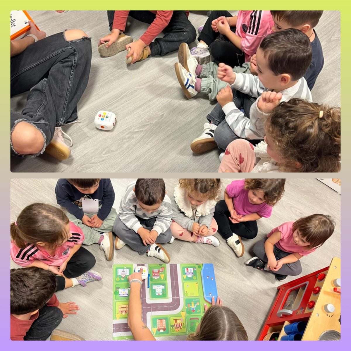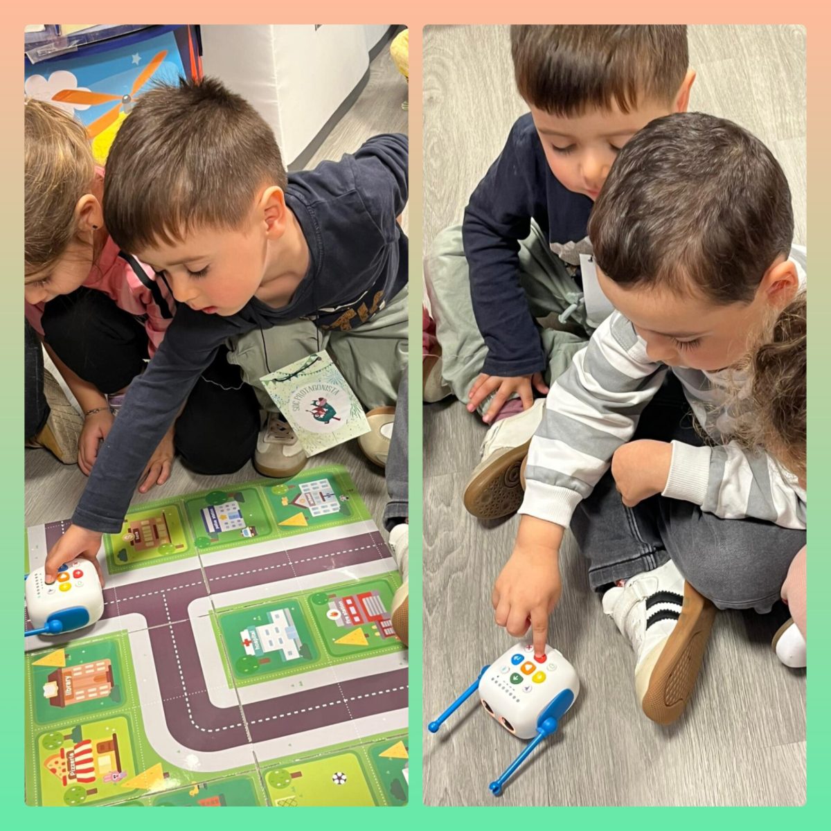 En segon lloc, hem iniciat l’activitat de robòtica i hem conegut per primera vegada al nostre petit robot: la TaleBot Aquest dispositiu el programem perquè camini i faci el recorregut que nosaltres li proposem i gaudim molt d’aquest moment. La Marta, la mestra de robòtica, ens ajuda a aconseguir-ho i treballem i juguem en petits grups perquè tots puguem participar i col·laborar en les diferents activitats.