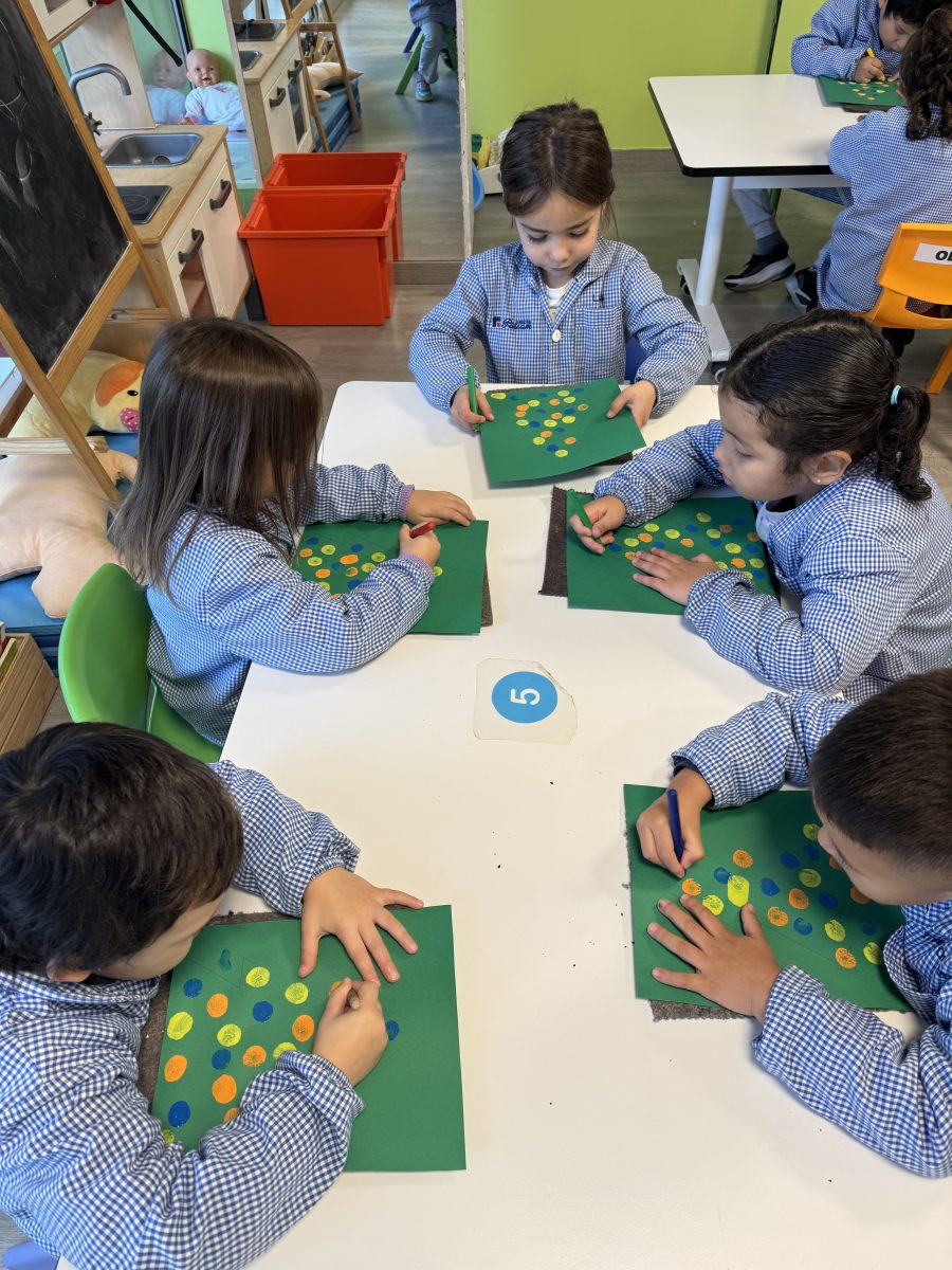 Hem explorat el món de les arts plàstiques, pintant amb colors vibrants, experimentant amb diferents textures i gaudint d’activitats com el fet de punxar que estimulen la nostra destresa manual.