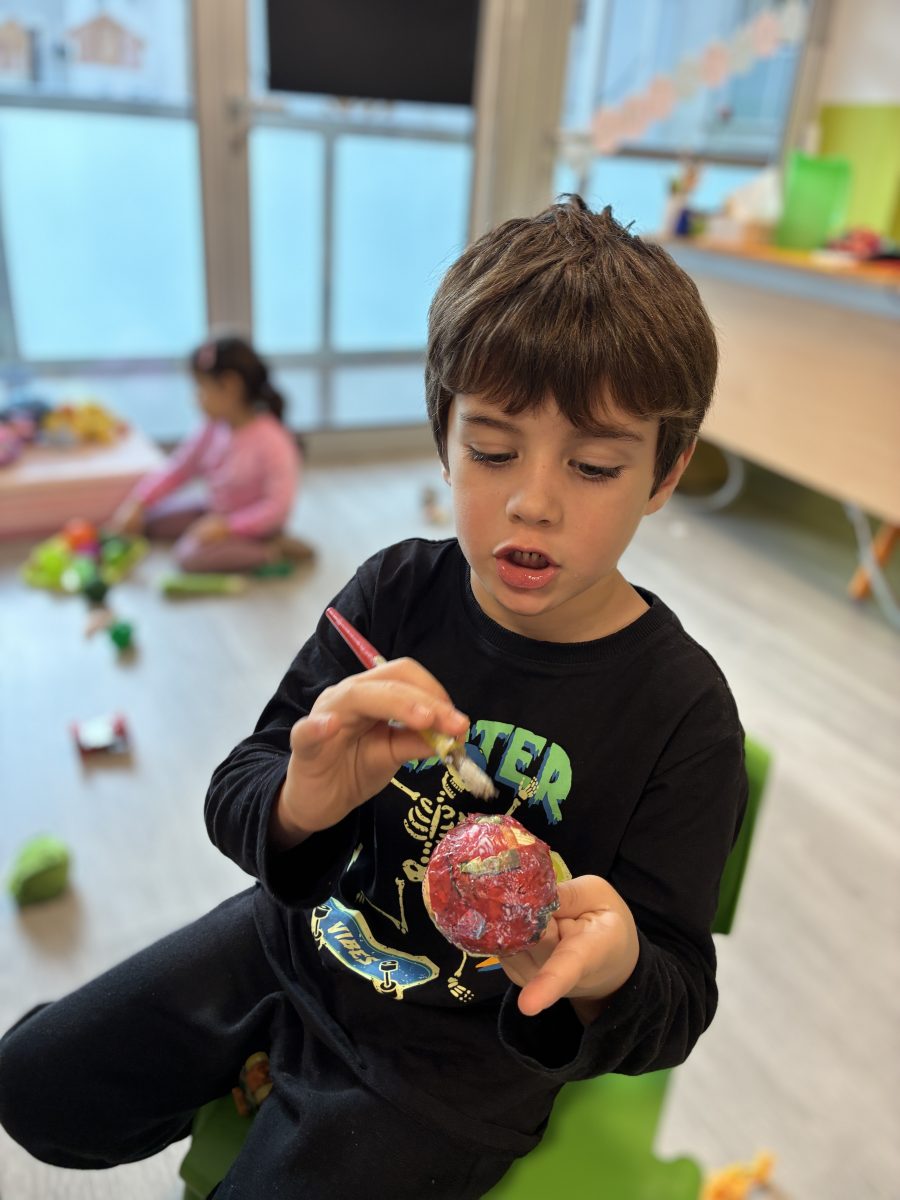 We’ve explored the world of visual arts, painting with vibrant colors, experimenting with different textures, and enjoying activities like pricking that enhance our fine motor skills.