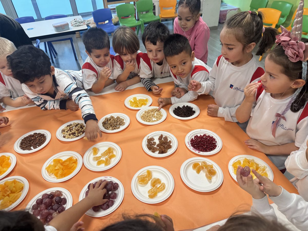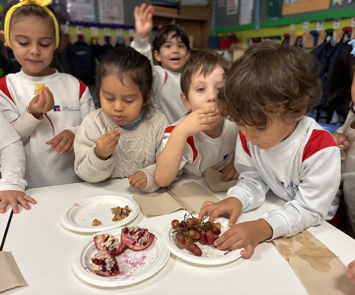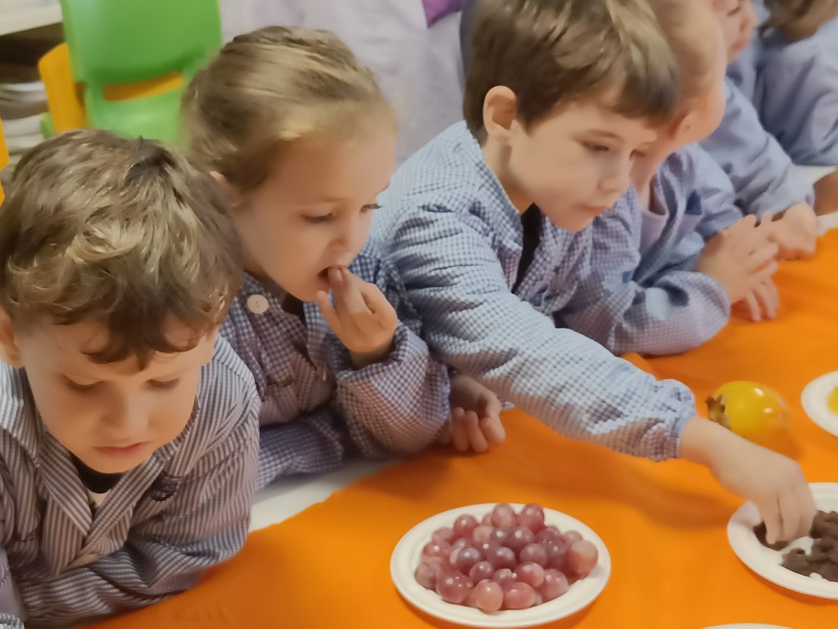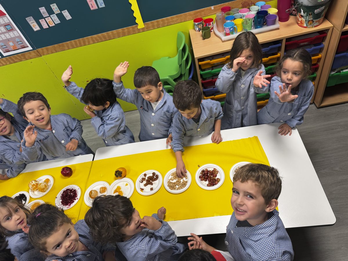 Hem pogut veure, tocar i tastar diferents fruits com la magrana, la mandarina, la taronja, el caqui, el raïm i fruits secs com avellanes, ametlles, nous, cacauets, figues i també hem tastat codony!