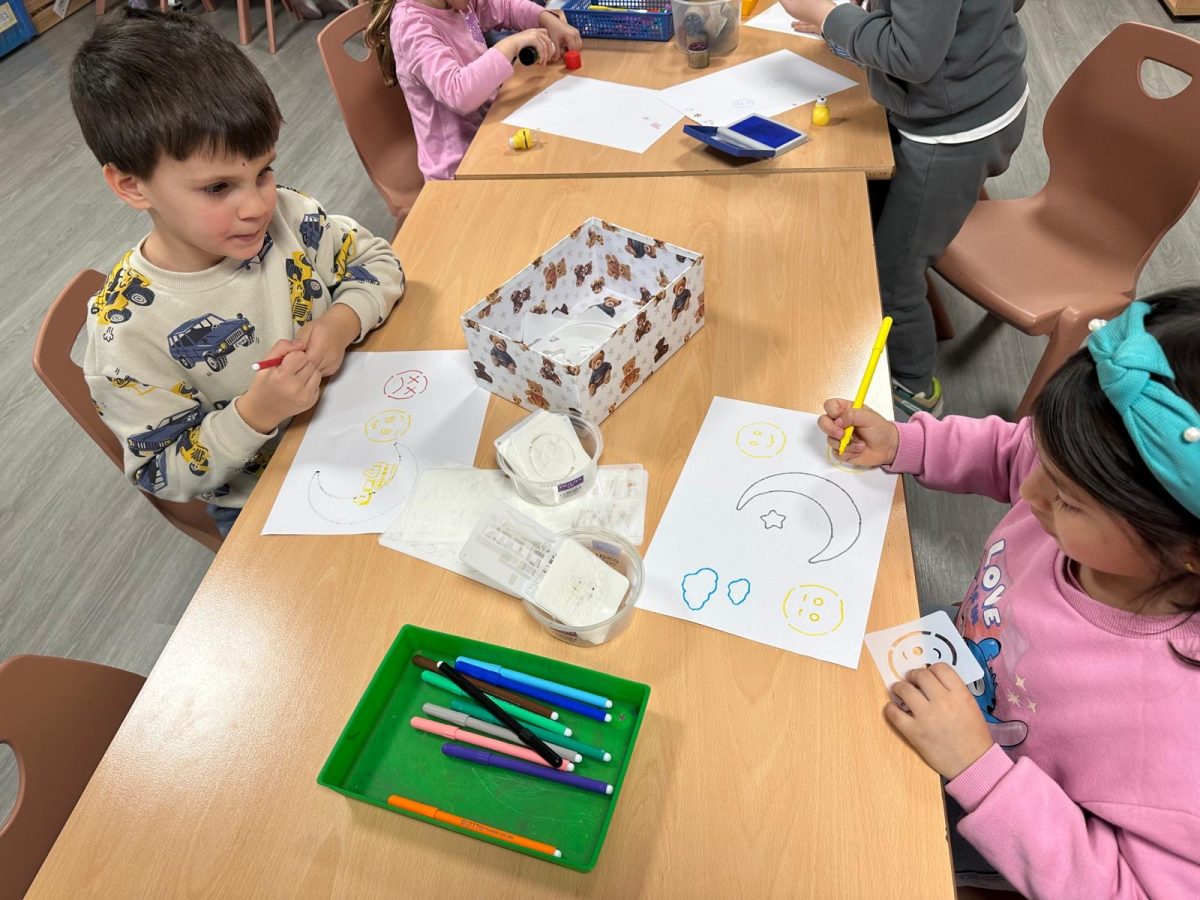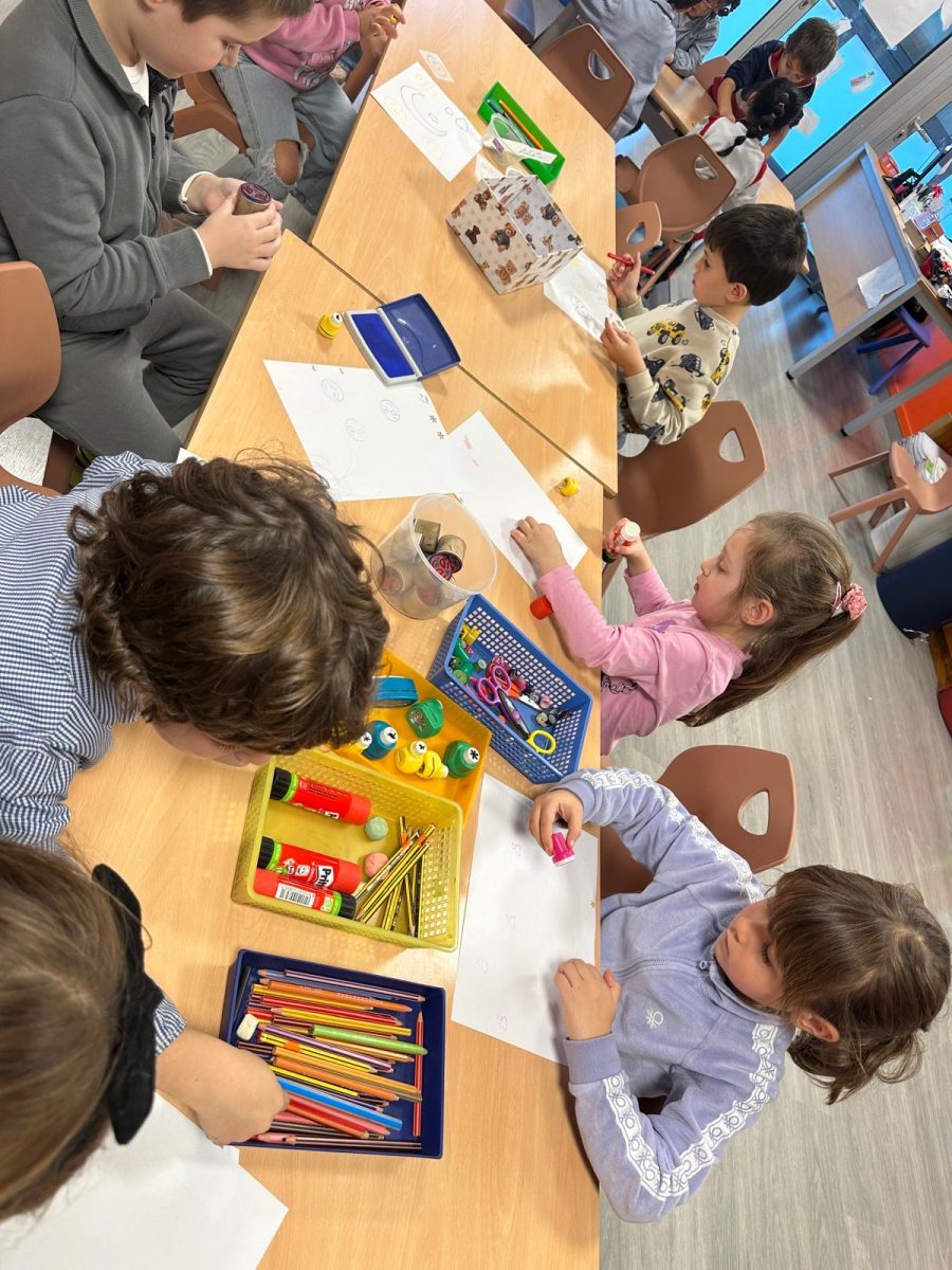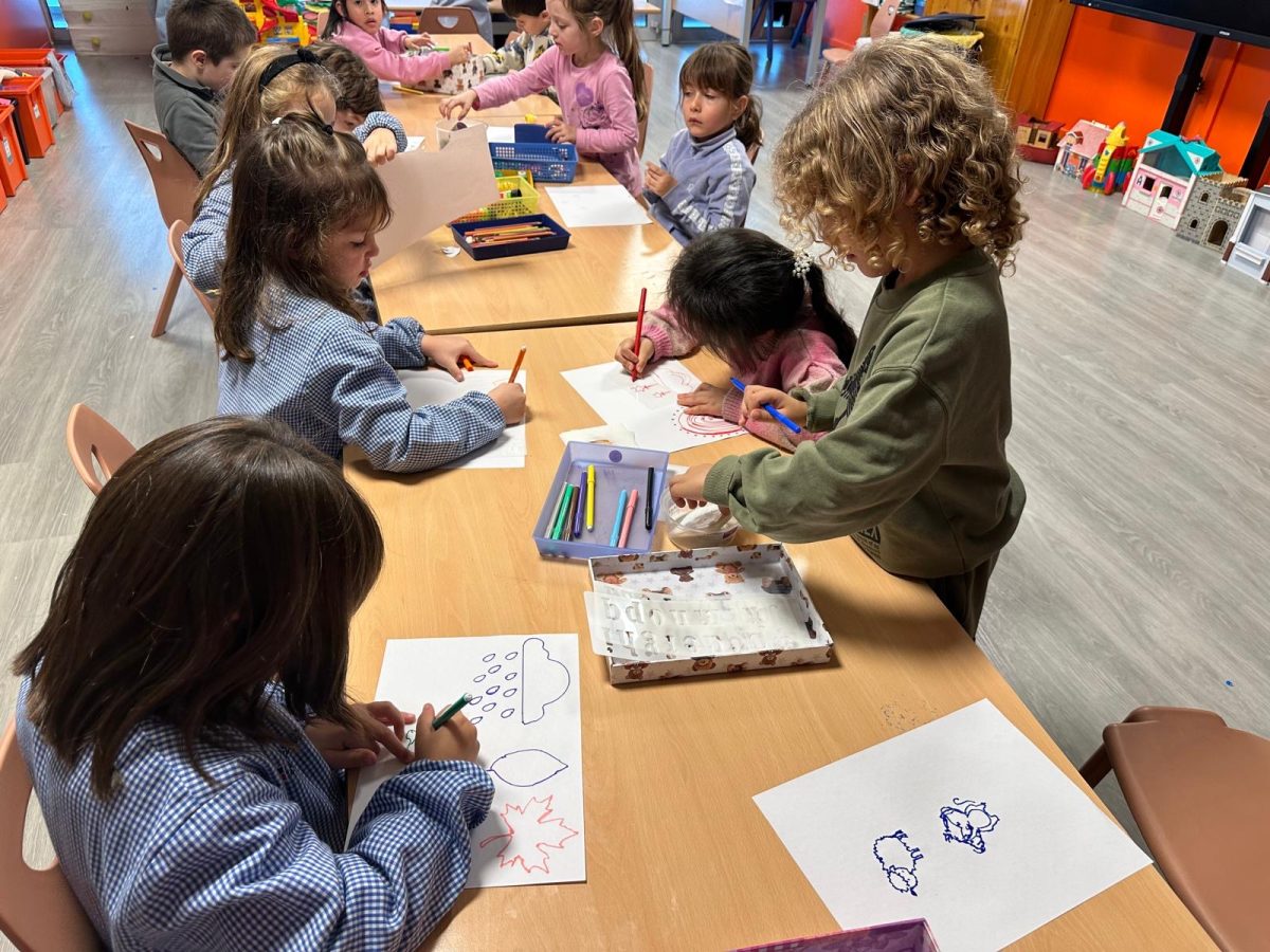 A l’ambient de CreArt deixem volar la nostra imaginació i podem trobar espais com el de fer polseres, pintar amb aquarel·les, fer màscares, fer dibuixos amb plantilles i segells…